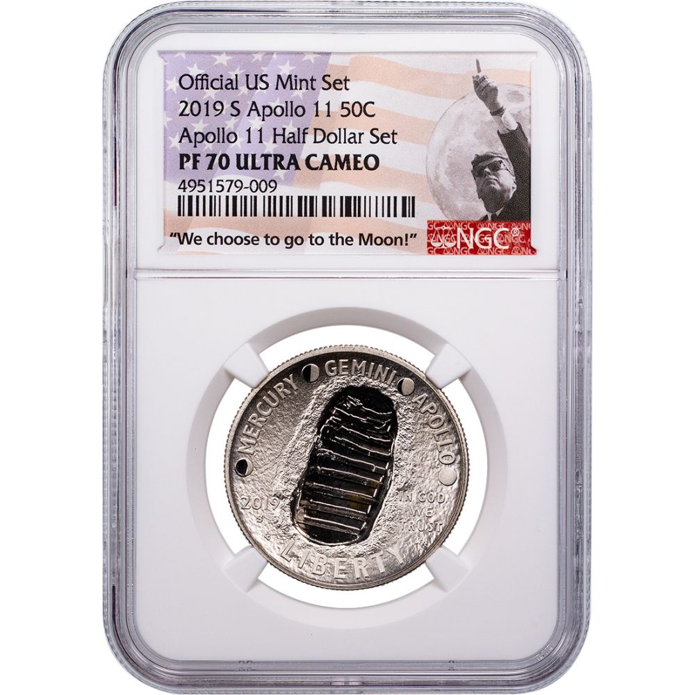 This 2019-S Apollo 11 Half Dollar was struck to honor the 50th anniversary of the moon landing.